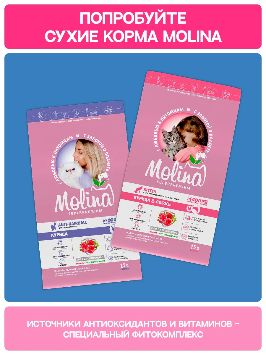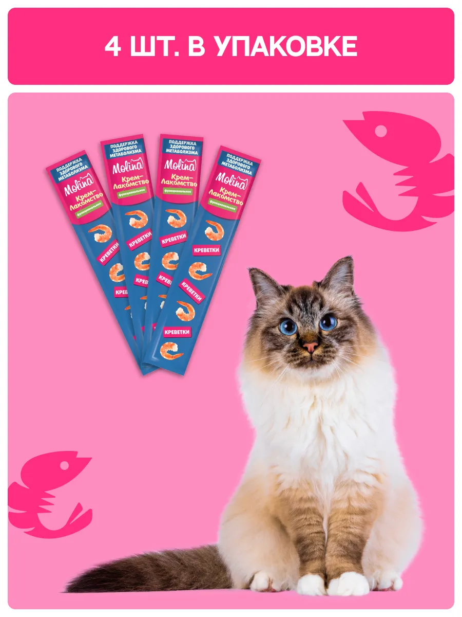 MOLINA Крем-лакомство с креветками — вкусное и полезное угощение, которое заботится о здоровье и энергии вашего питомца каждый день.