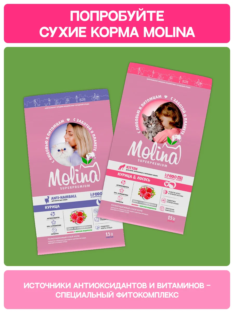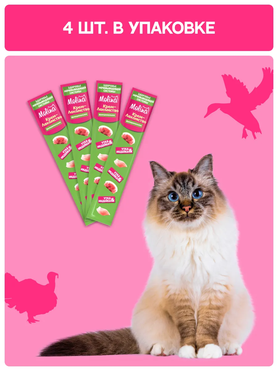 MOLINA Крем-лакомство с уткой и индейкой — это вкусное и полезное дополнение к рациону, которое помогает заботиться о здоровье питомца каждый день.