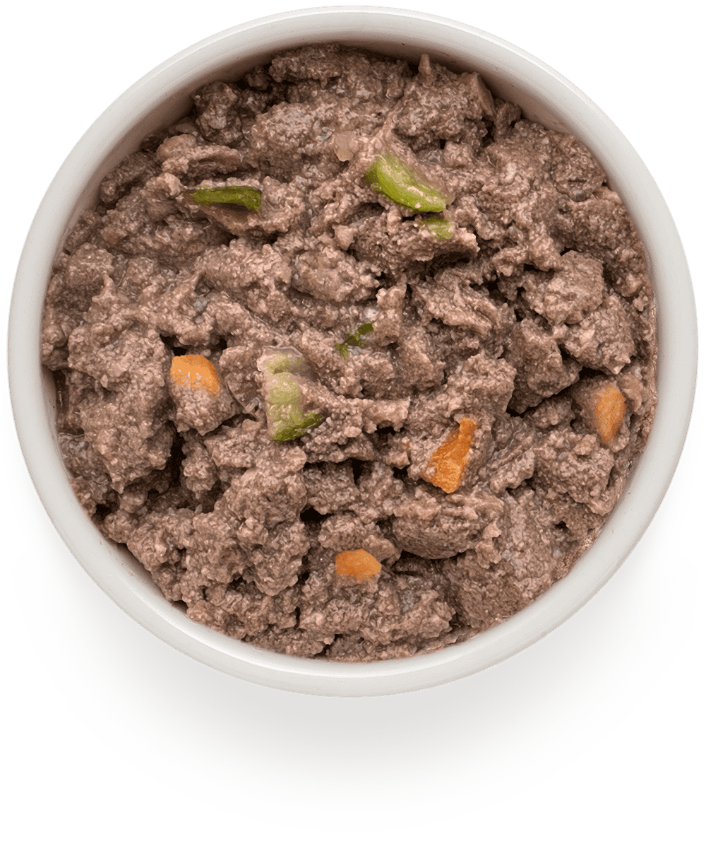 Говядина (70%), Цукини (4%), Морковь (4%), Бульон (17%), Минералы (5%).