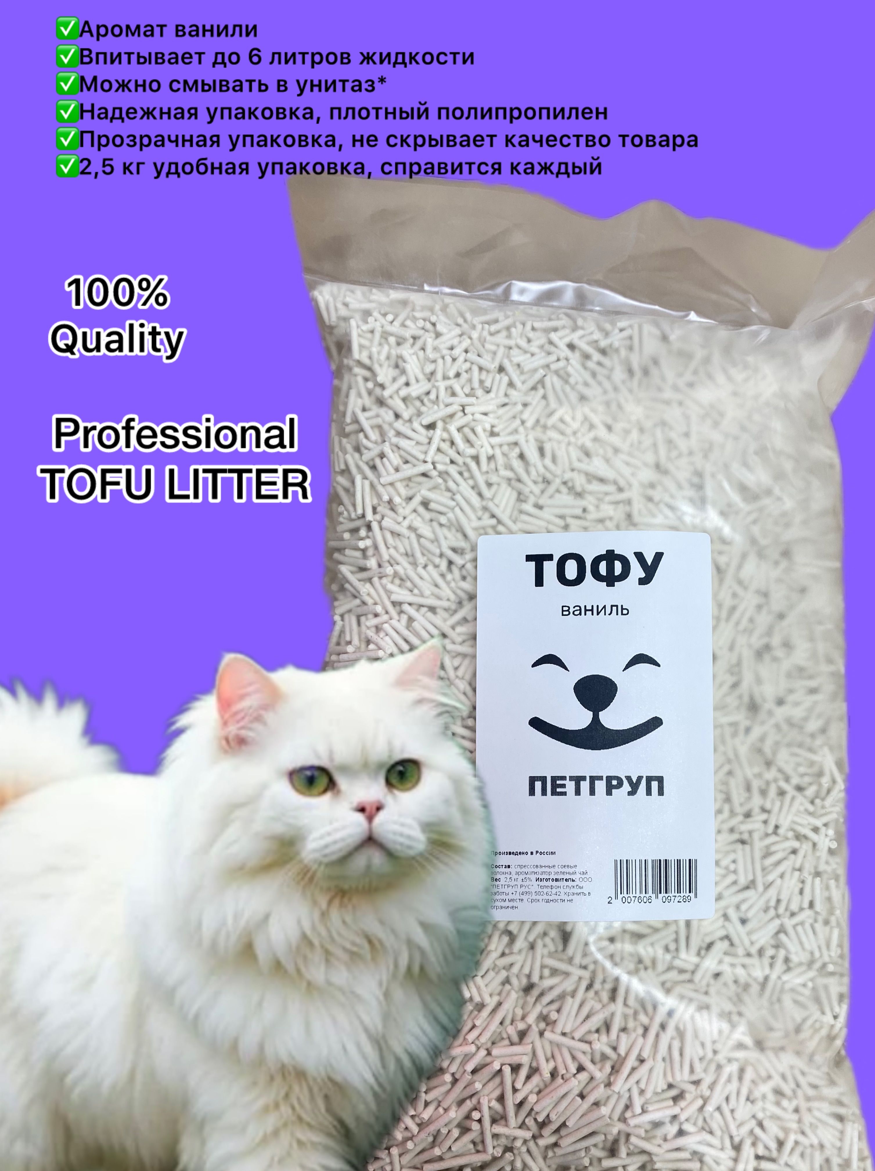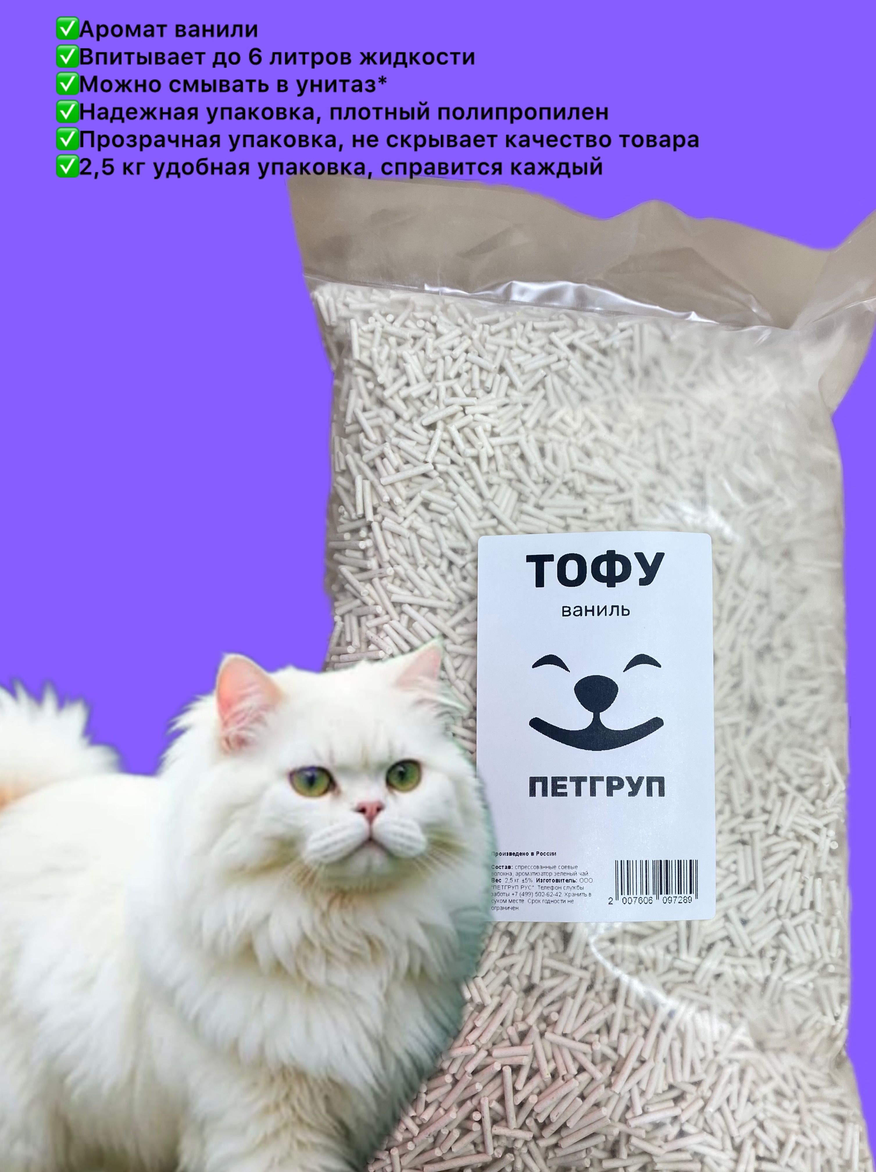 Аромат ванили дарит свежесть, а растительная основа заботится о питомце.