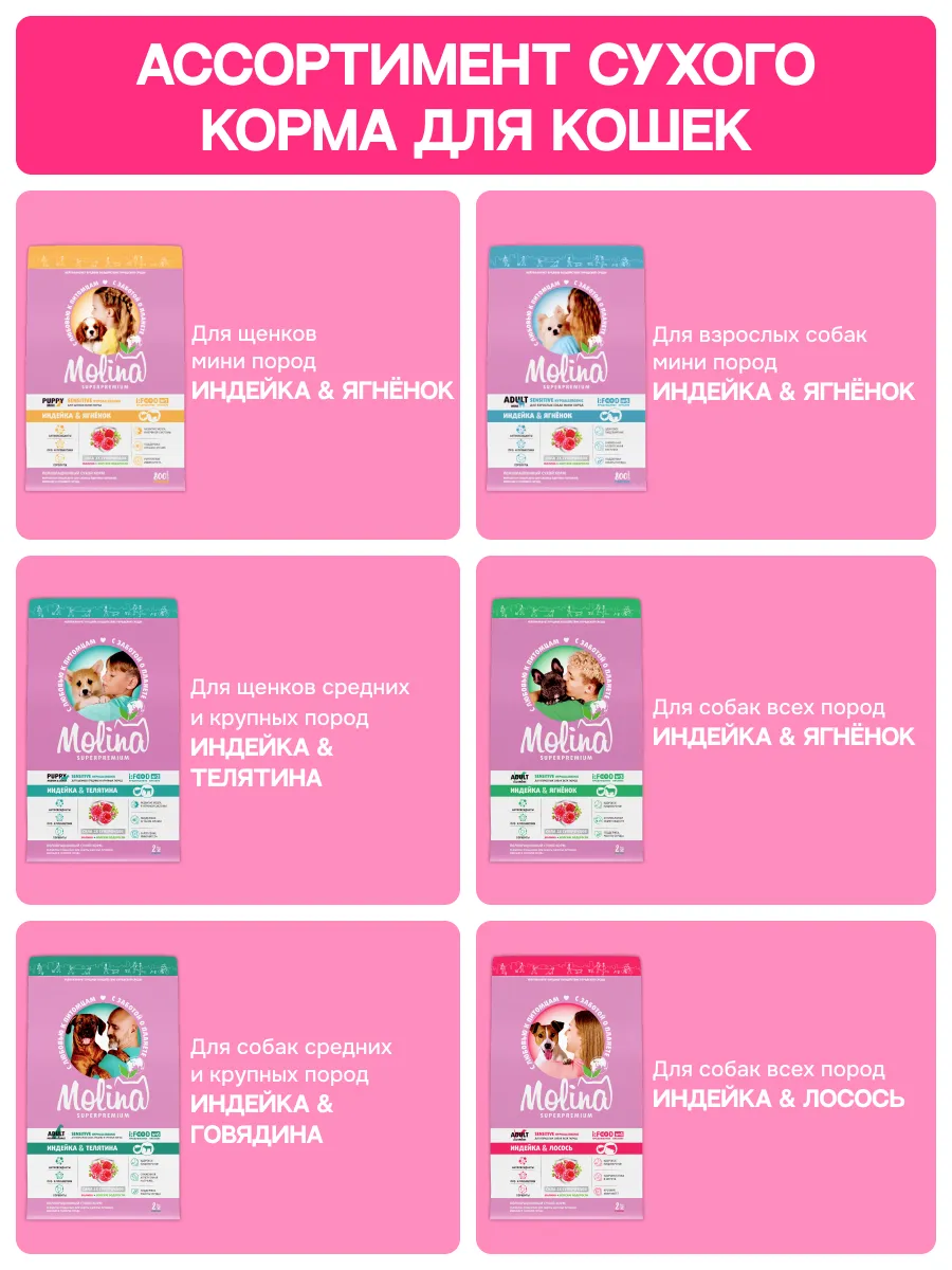 Новая линейка сухих кормов Molina для кошек и собак создана с учетом рекомендаций по питанию животных, ведущих малоподвижный образ жизни.